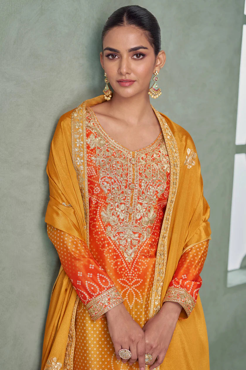 Bebika Chinon Silk Embroidery Palazzo Suit Set