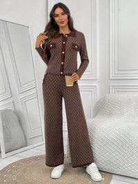 Set of 2 Pieces, Warm Fabric Long-Sleeved Shirt, Front Slit With Snap Button - Brown / S/M