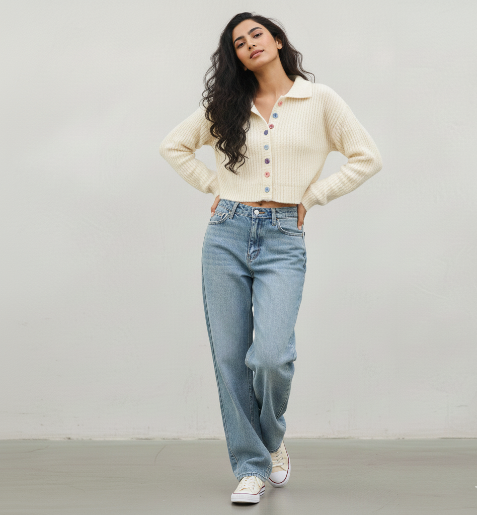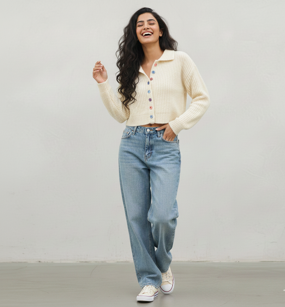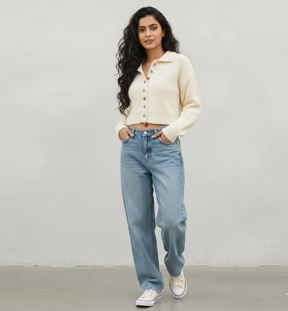 Long Sleeve Designer Knitted Sweater - Beige / One size