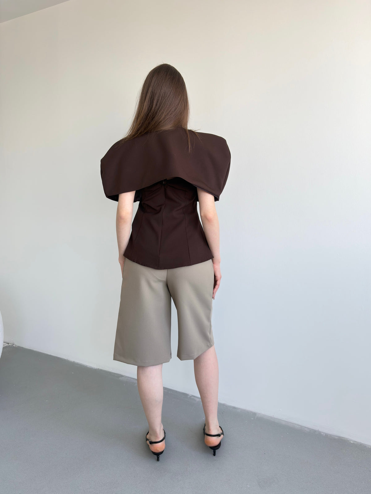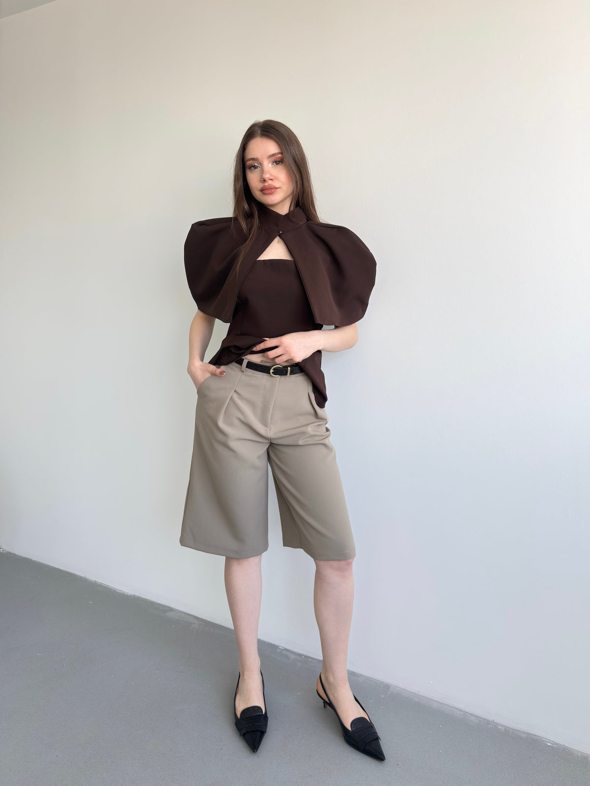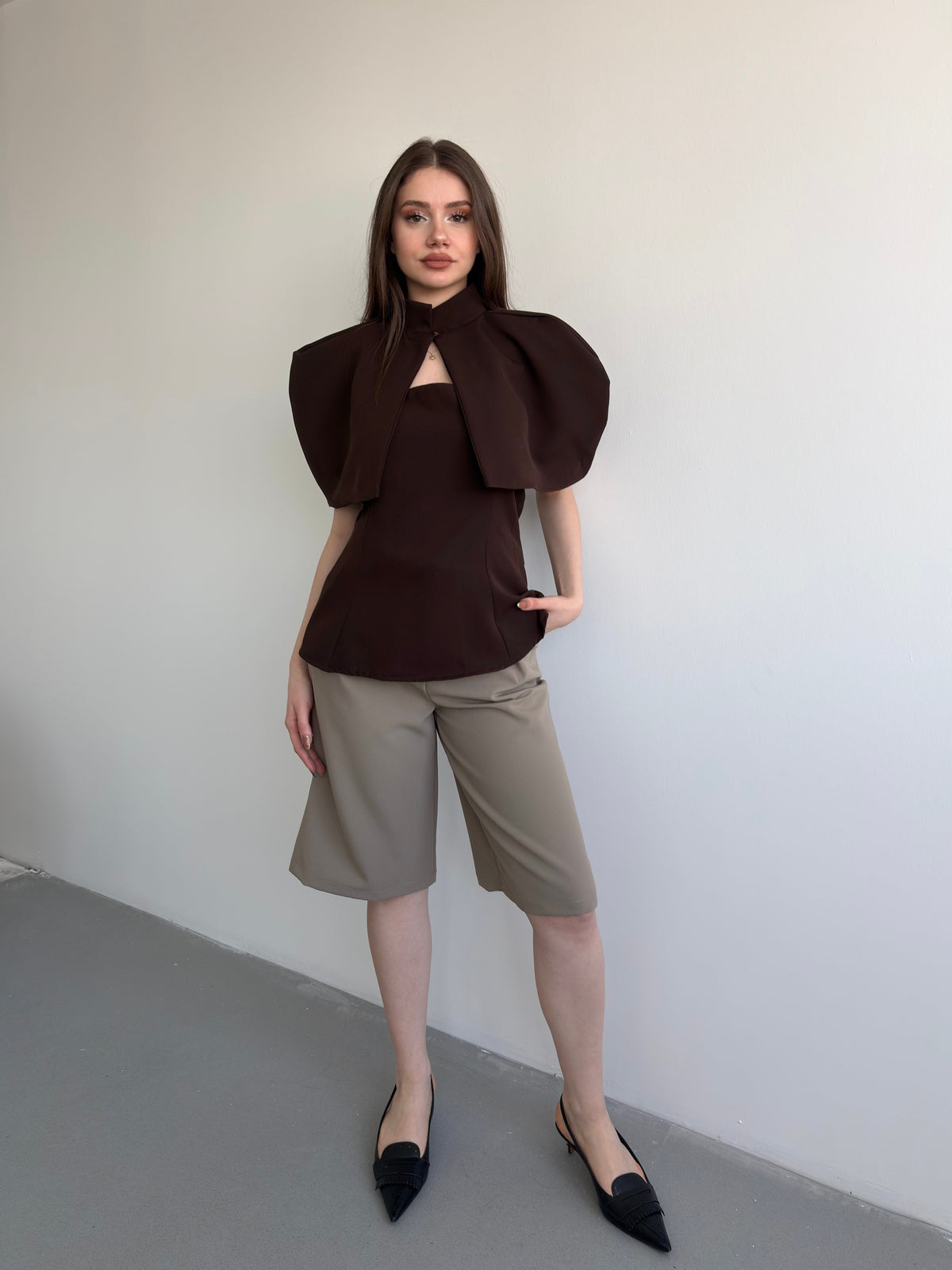 Venice Shoulder Cape & Blouse Set - Brown / S/M